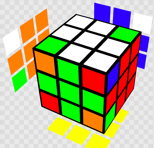 ちなみに、実行中のキューブの状態は全く意識する必要が無いものの、上記の(☆)までの実行が終わった時点でのキューブの状態は下から見ると次のようになっています。バッファ (白緑赤) のパーツが、白面が黄面に来る形でCOが正しく埋まっていますね。